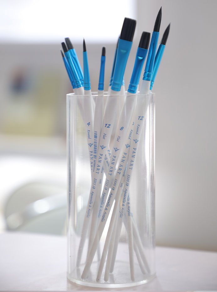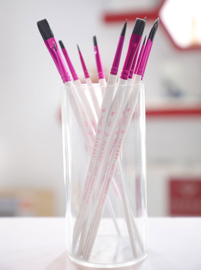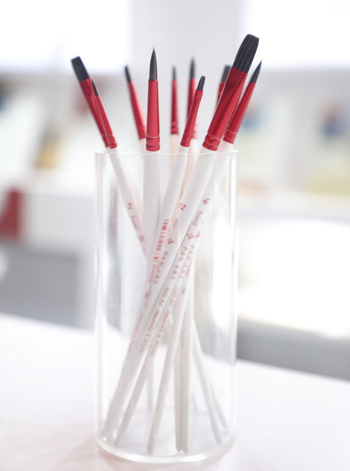The A & A Master Brushes, featuring an elegant white matte handle for a professional look and feel. Designed for precision and performance, these brushes are ideal for experienced artists seeking control and finesse.